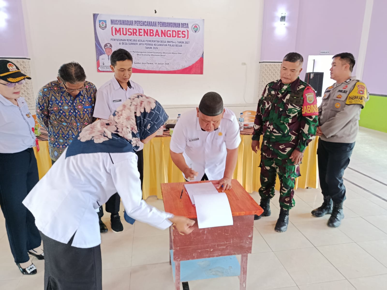 Acara diakhiri dengan penandatanganan berita acara hasil Musrenbangdes RKPDes Tahun 2027 sebagai bentuk komitmen bersama untuk melaksanakan perencanaan pembangunan yang telah disepakati. Partisipasi aktif masyarakat dalam Musrenbangdes diharapkan dapat menghasilkan perencanaan dan pembangunan yang lebih tepat sasaran serta sesuai dengan kebutuhan riil masyarakat Desa Sumber Jaya Permai. Penulis: Ratih Sulastri, S. Pd